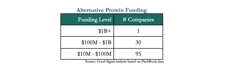 According to PitchBook, the alternative protein sector comprises of less than 1,000 funded companies, of which, just 126 companies are leading the charge with investments above $10 million – a small startup pool for an industry touted to be over a $1 trillion by 20509.