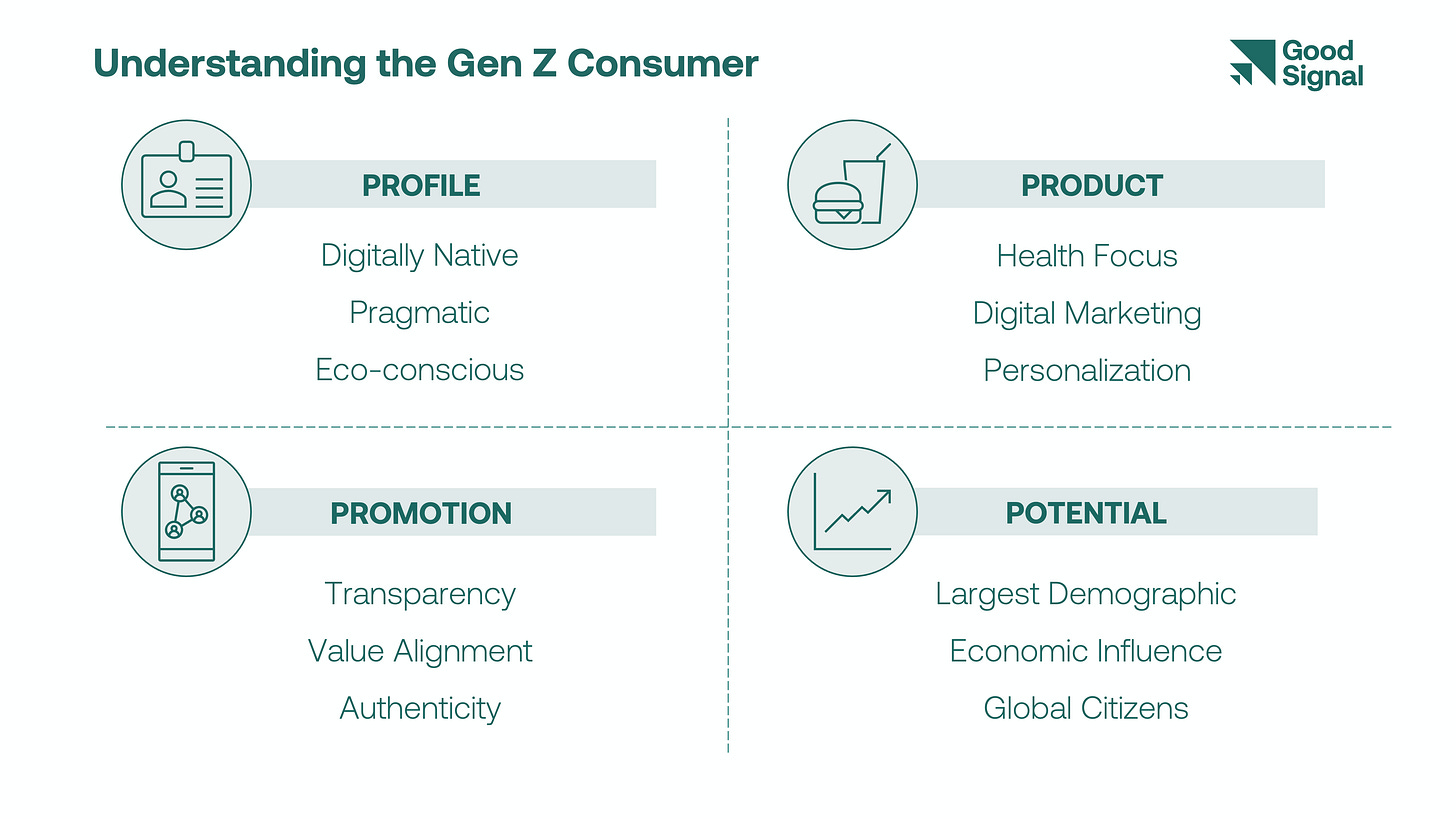 Gen Z is steering a significant cultural shift with a profile that prioritizes health, sustainability, and ethical consumerism. As Gen Zers’ sphere of influence grows, they will continue to reshape industries, pushing towards products that are transparent, sustainable, and aligned with their values. Brands must make an effort to understand and engage these consumers on their terms.